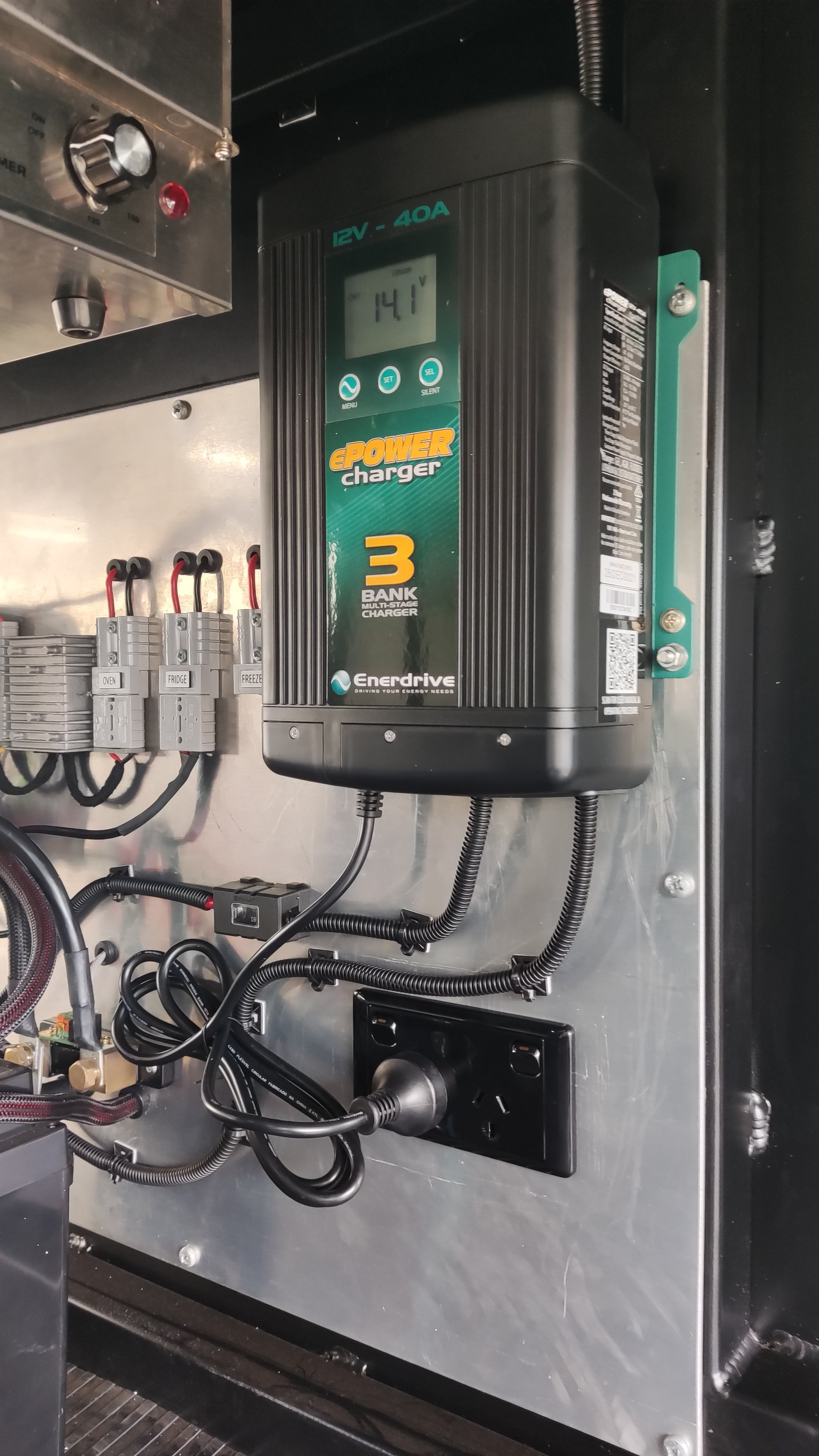 The Enerdrive 40A 3 Bank charger will plug into one of the GPO outlet ports.