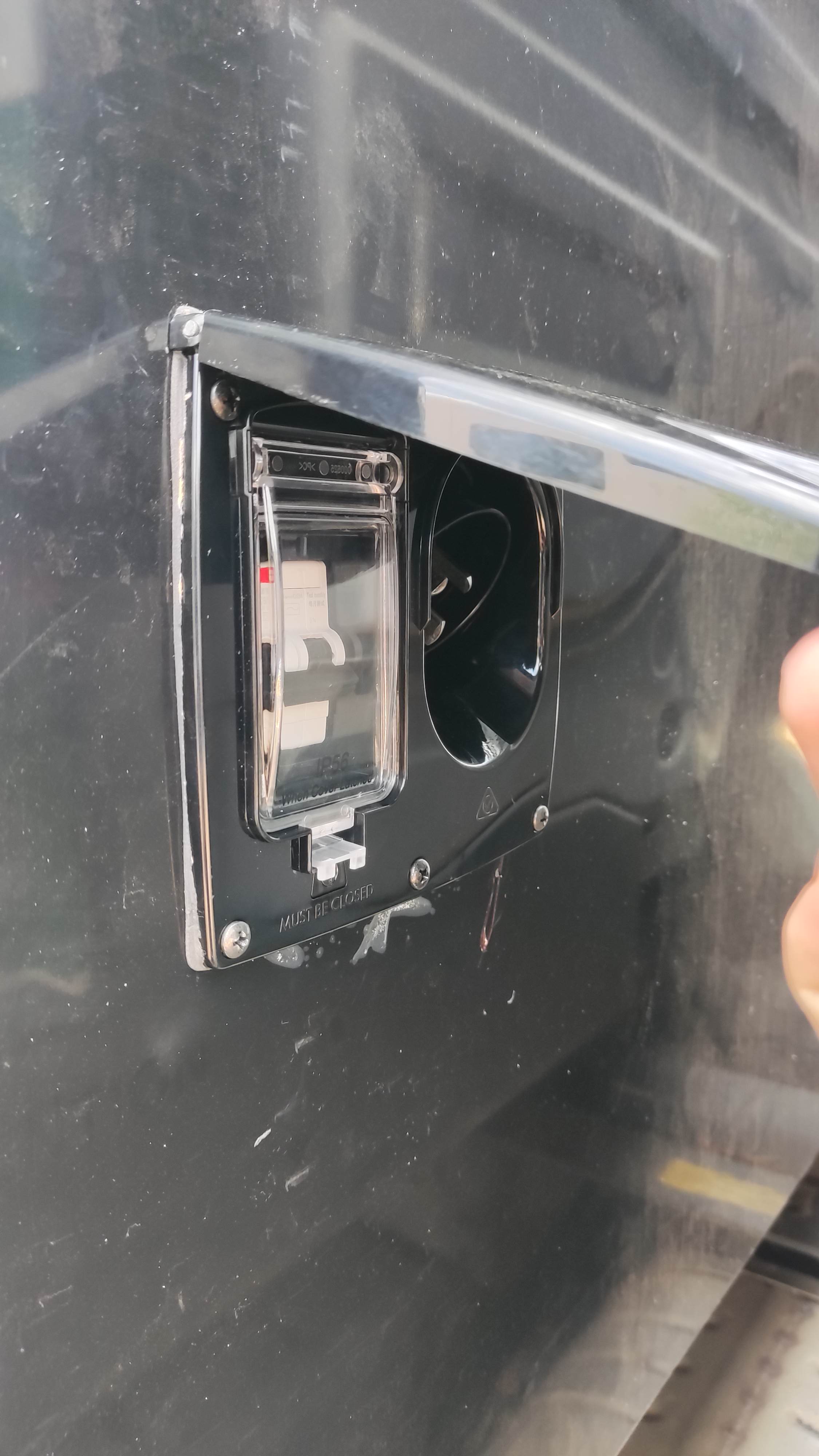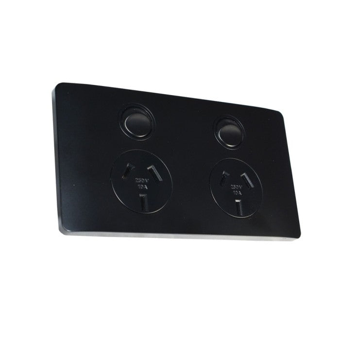The BLACK 15A inlet has a built in RCD for added protection, to be mounted on the exterior of your canopy.
