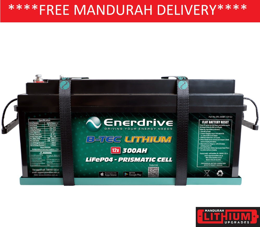 Available in 12v 300Ah capacity, the Enerdrive B-TEC G2 lithium battery is designed and intended for use in deep cycle applications where a single battery is required that meets the amp hour capacity.